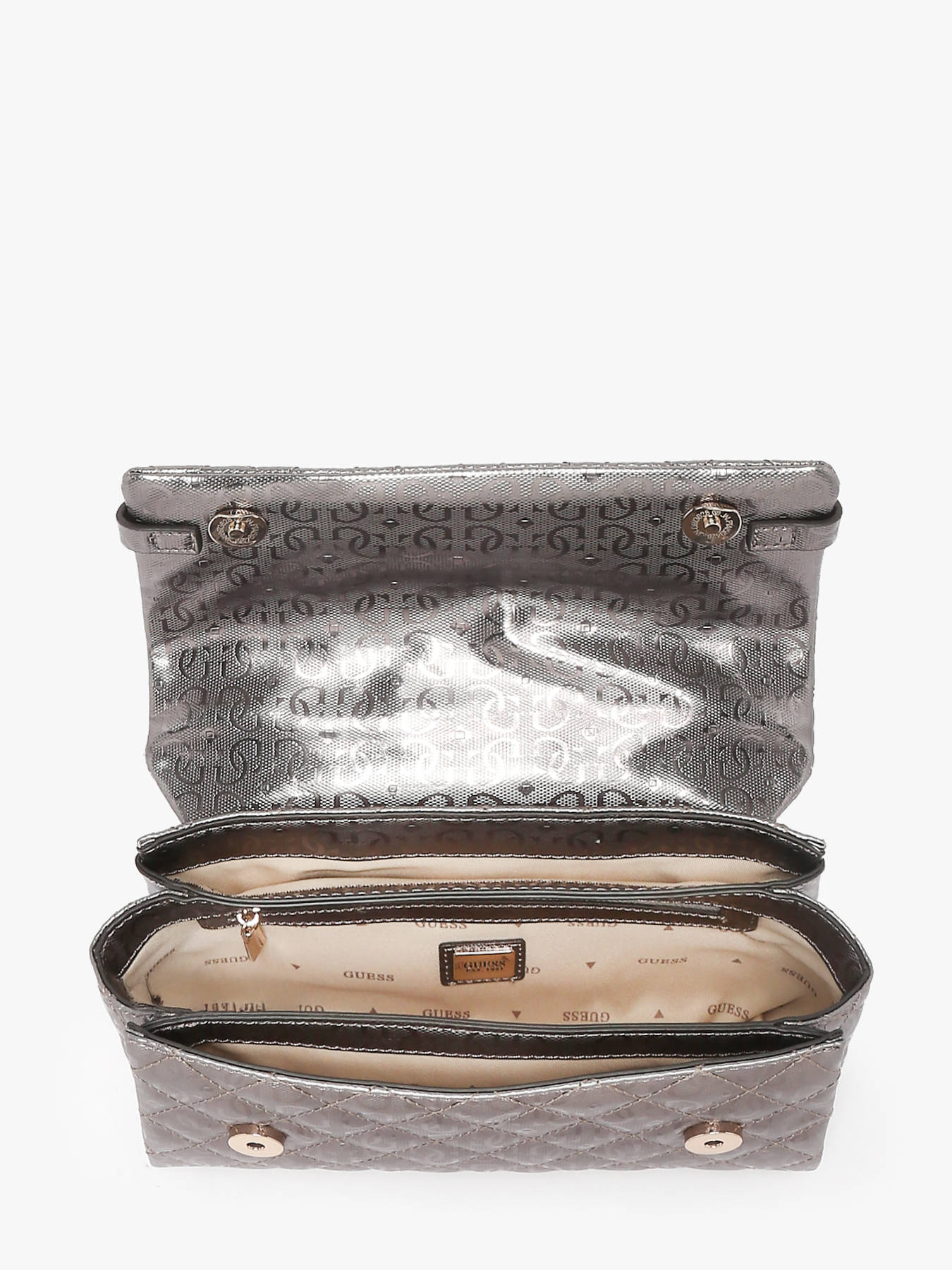 Apportez style et praticité à vos tenues avec le sac bandoulière GUESS de la ligne IDRA en couleur argent, conçu pour allier élégance et fonctionnalité. Confectionné en toile enduite, il offre résistance et légèreté tout en ajoutant une touche moderne et brillante à vos looks. À l’extérieur, une poche zippée au dos permet un accès rapide à vos essentiels, tandis que la fermeture à rabat aimanté sécurise vos affaires avec simplicité. L’intérieur est équipé de trois compartiments, d’une poche zippée et de six emplacements bancaires pour organiser vos effets personnels de manière optimale. Polyvalent, ce sac peut se porter à la main grâce à son anse de 8 cm ou en bandoulière grâce à sa bandoulière et ses bretelles réglables, offrant un confort adapté à vos besoins. Chic, pratique et tendance, il devient rapidement un accessoire indispensable de votre garde-robe.