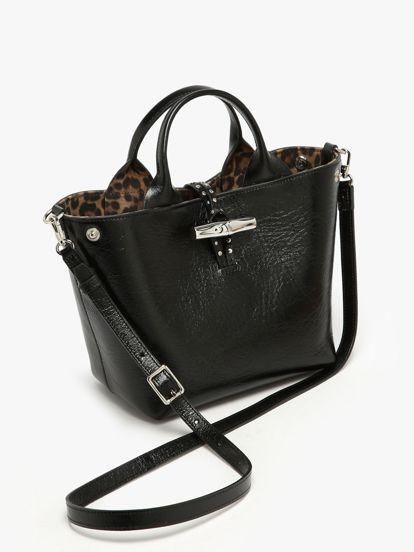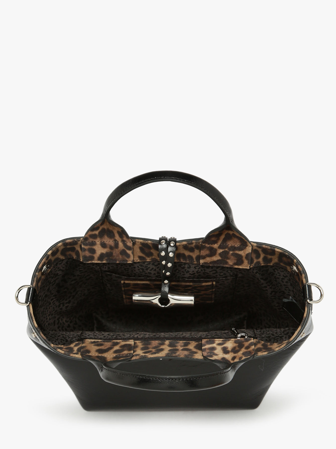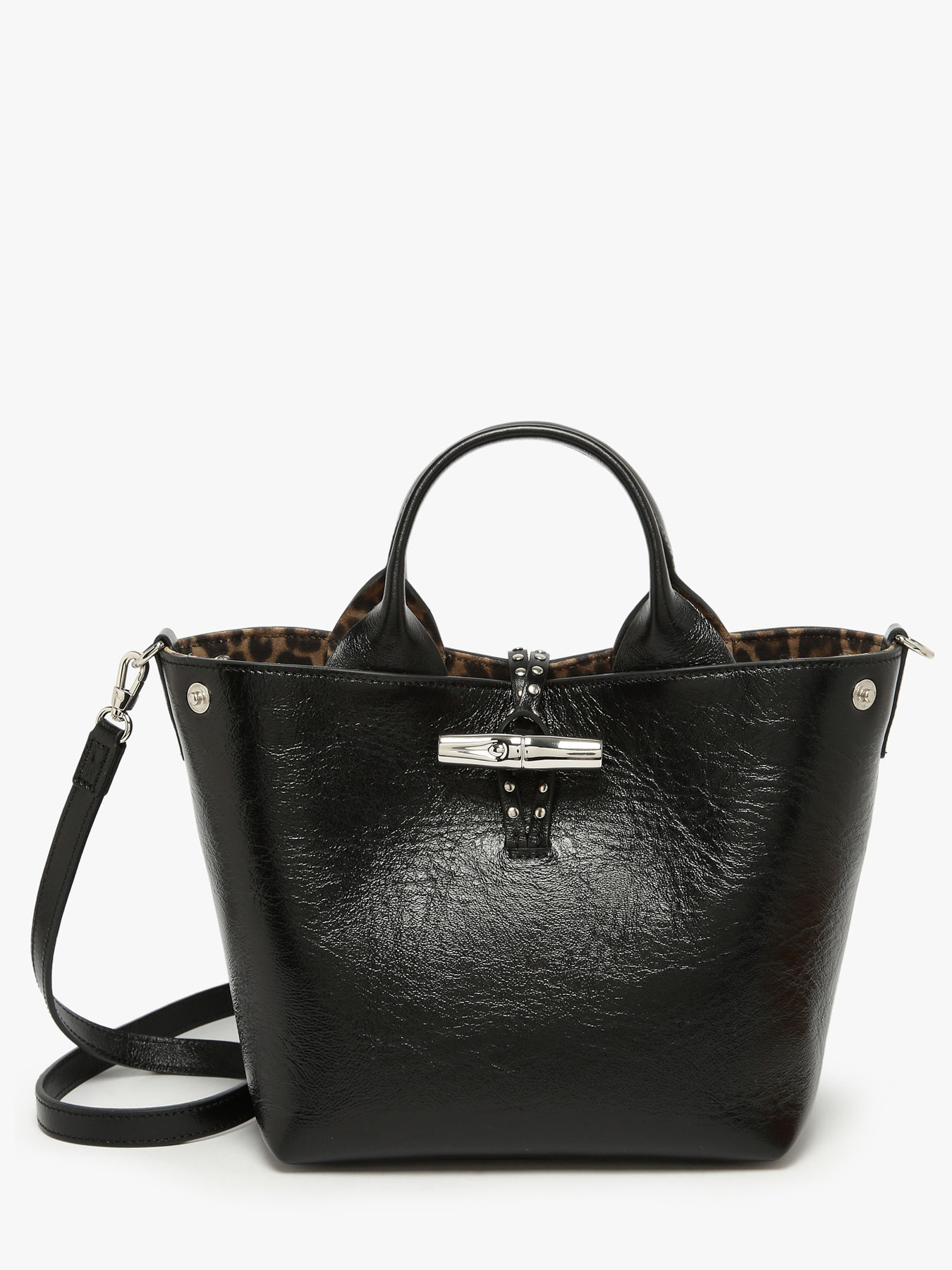 Évoquant l’audace et l’éclectisme de Londres, le Sac à main XS Le Roseau se distingue par son cuir de vachette froissé, souple et texturé, incarnant un chic décontracté empreint de caractère. Sa petite taille cache un intérieur pratique, doté d’un compartiment unique et d’une poche zippée, parfait pour organiser vos essentiels tout en restant élégant. La doublure ornée d’un motif léopard apporte une touche ludique et tendance, rappelant l’excentricité des rues londoniennes. Les petits clous, discrets mais affirmés, soulignent le style rock du sac, en parfaite harmonie avec le fermoir Bambou, signature emblématique de la ligne. Sa bandoulière amovible en chaîne argentée permet un porté à l’épaule ou croisé, offrant polyvalence et confort. Partie de la ligne iconique Le Roseau, ce sac met en valeur le savoir-faire artisanal et maroquinier de Longchamp. Le fermoir Bambou, véritable bijou, apporte éclat et féminité, faisant de ce mini sac un accessoire tendance, raffiné et fonctionnel.