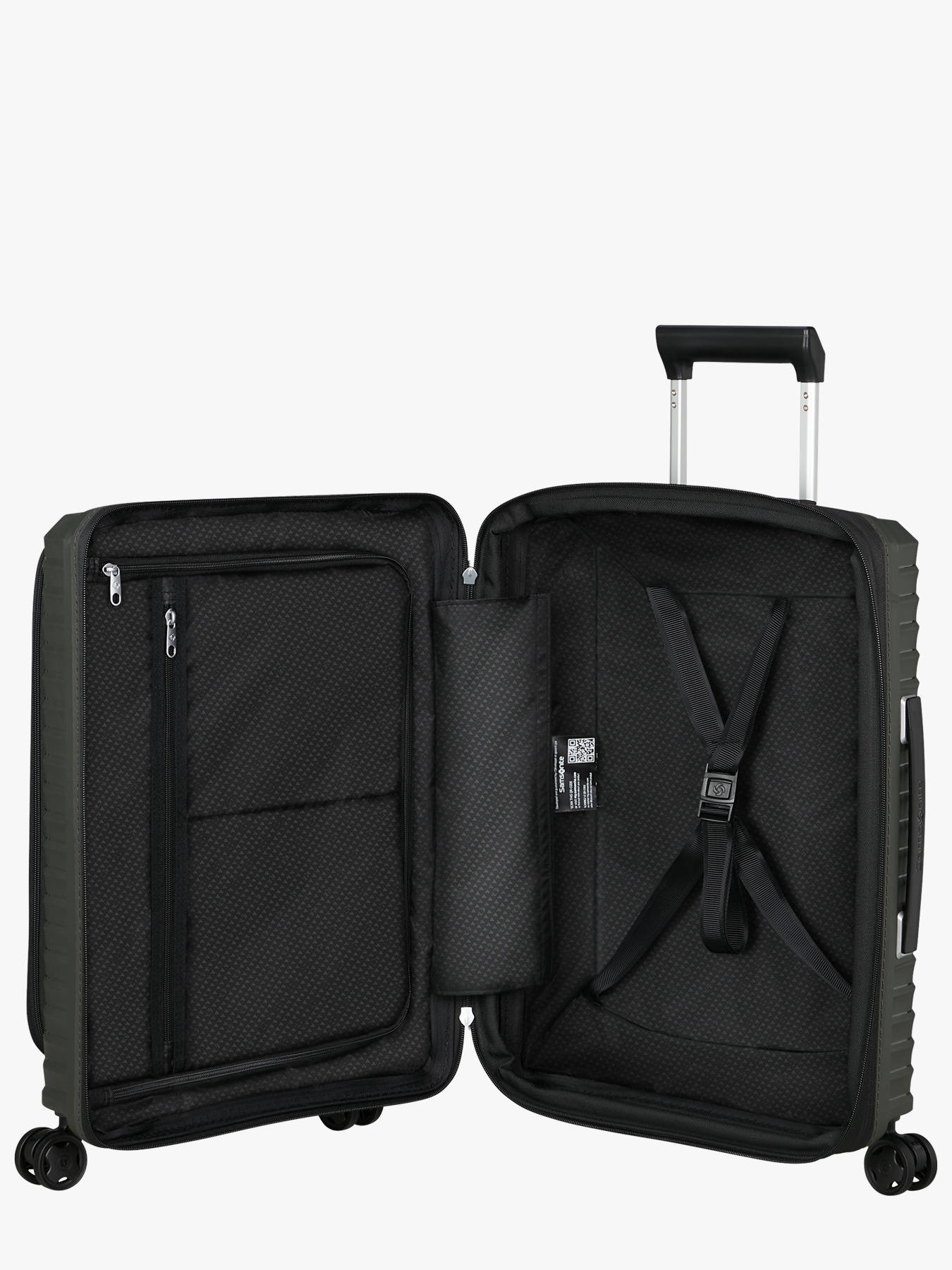 Voyagez en tout confort avec la valise cabine Samsonite Upscape à 4 roues, conçue pour simplifier vos déplacements grâce à une combinaison idéale de légèreté (2,6 kg) et de fonctionnalités. Rigide et extensible, elle offre un volume généreux de 42 à 48 L (55 x 40 x 23/26 cm), tout en restant compatible avec les formats cabine. Sa coque en Polypropylène intègre une innovation majeure : des roues à suspension qui absorbent les chocs et réduisent considérablement le bruit de roulement. La sécurité est renforcée par une serrure à code TSA à 3 chiffres qui permet de verrouiller chaque compartiment séparément. L'organisation est pensée pour la technologie grâce à une poche frontale souple facile d'accès incluant des compartiments dédiés et rembourrés pour un ordinateur portable 15.6"" et une tablette 10.5"", un étui pour téléphone et un emplacement pour Power Bank. Le confort d'hygiène est assuré par une doublure intérieure amovible et lavable à la main. Voyagez sereinement avec l'Upscape, garanti 5 ans.